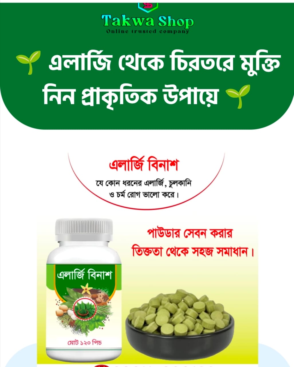 এলার্জি বিনাশ ট্যাবলেট এর কার্যকারিতা নিচে দেওয়া হলো>